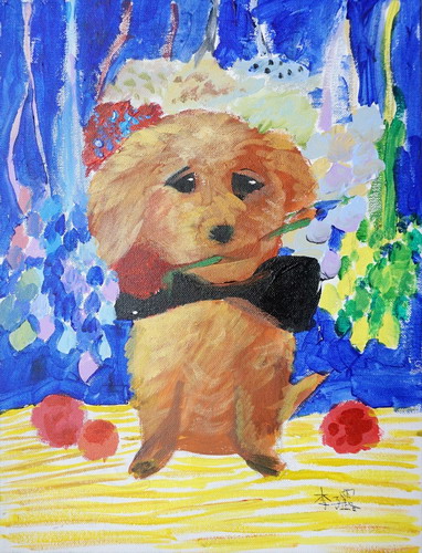 叼着玫瑰花的小狗