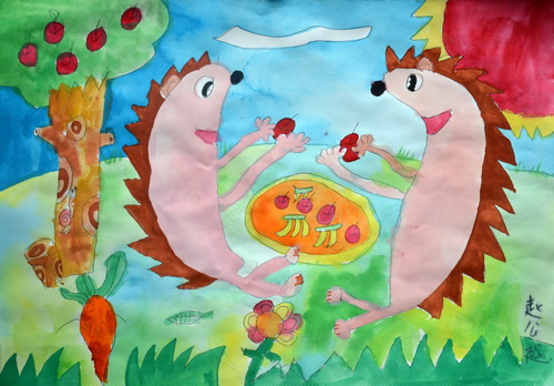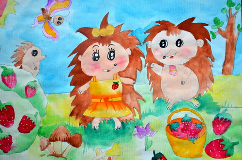 小刺猬摘草莓