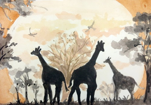 《剪影长颈鹿》