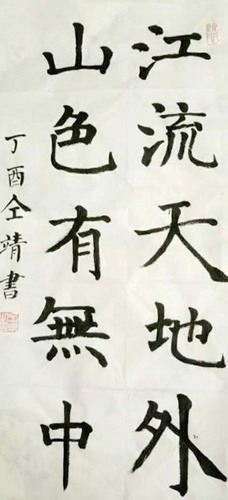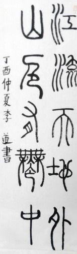 篆书(江流天地外,山色有无中)