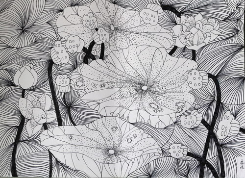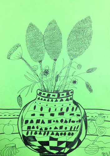 一幅瓶罐的线描