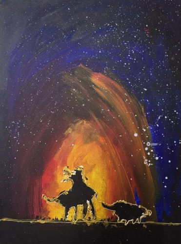 篝火下的剪影