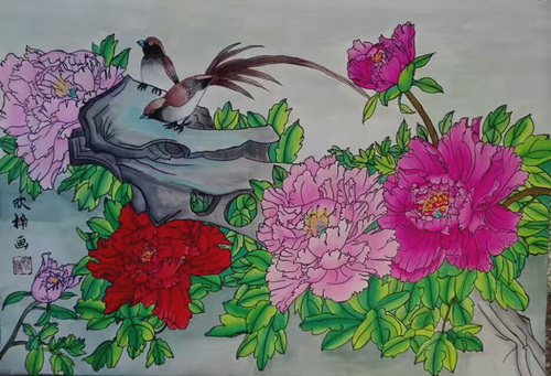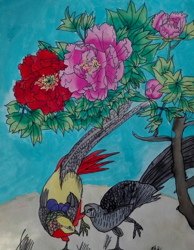 牡丹锦鸡
