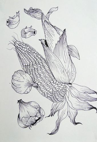 线描荷花
