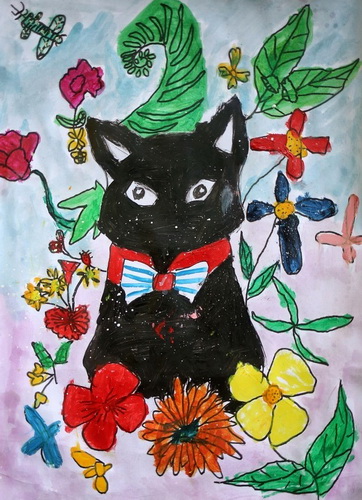 《花丛中的猫》