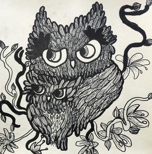 《线描---猫头鹰》