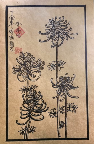 《线描菊花》