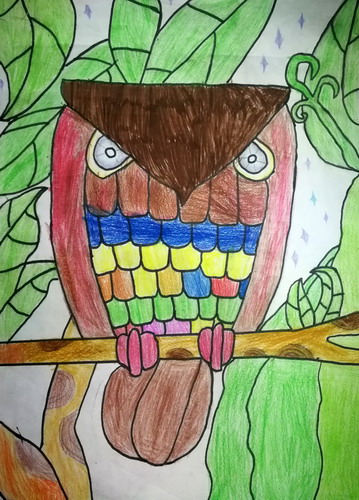 《森林中的多彩猫头鹰》