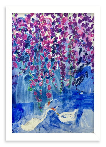 紫藤花下的大白鹅