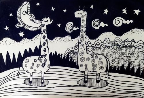 夜晚的长颈鹿