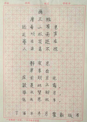 硬笔书法《题西林壁》