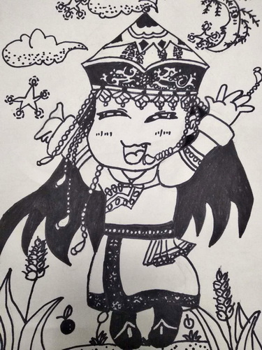 星空下的蒙古族女孩
