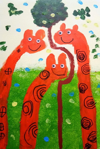 幸福的长颈鹿一家