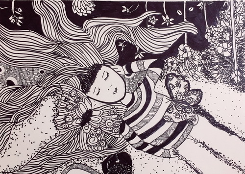 躺在花丛中的女孩