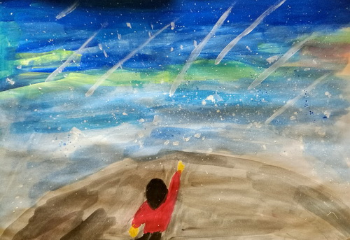 看流星雨的小女孩