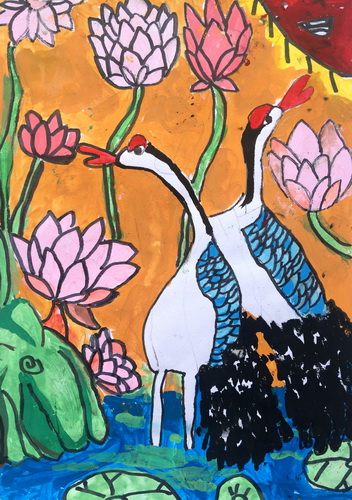 《嬉戏的丹顶鹤》