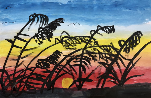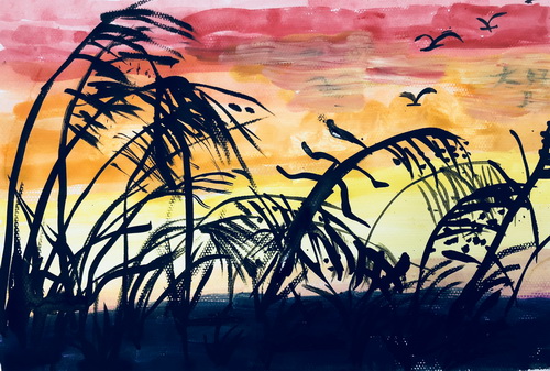 《夕阳下的芦苇》