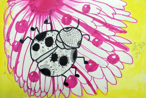 《粉花上的七星瓢虫》