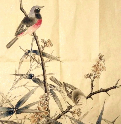 竹林双鸠图