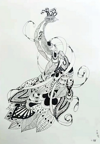 线描孔雀