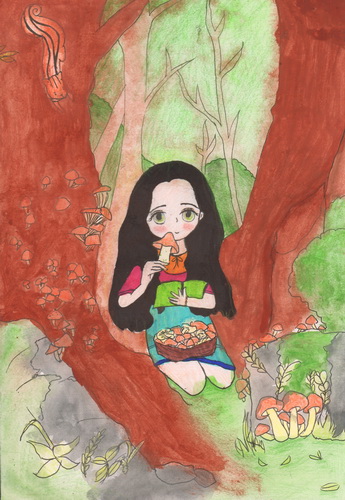 采蘑菇的小姑娘
