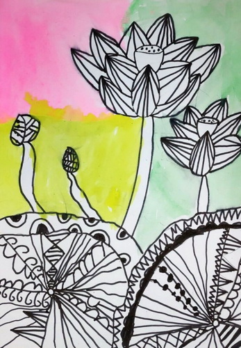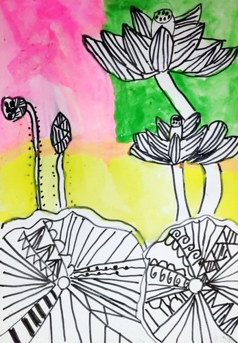 线描荷塘