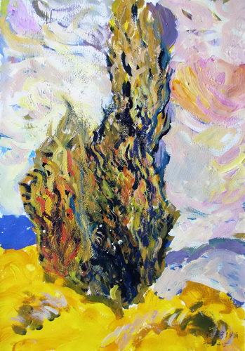 我学梵高画风景