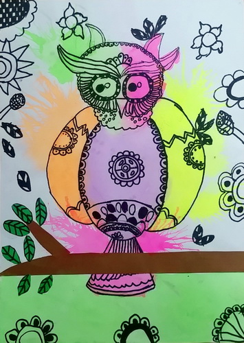 彩墨猫头鹰