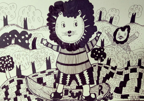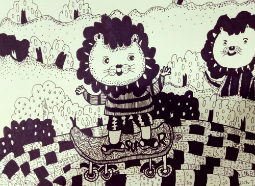 《滑滑板的狮子》