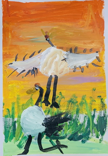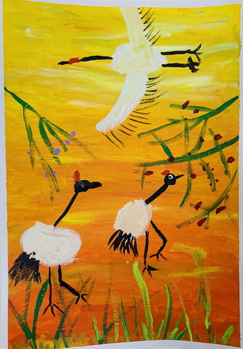 晚霞世界里的仙鹤