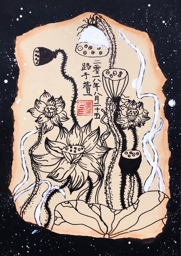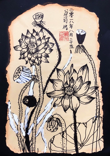 《莲蓬荷花图》