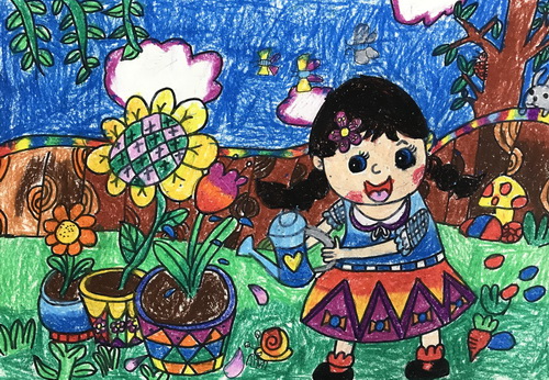 《浇花的小女孩》