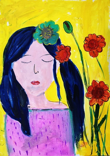 《爱花的少女》