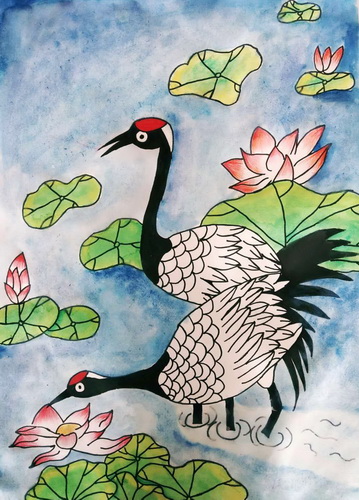 《仙鹤戏水》
