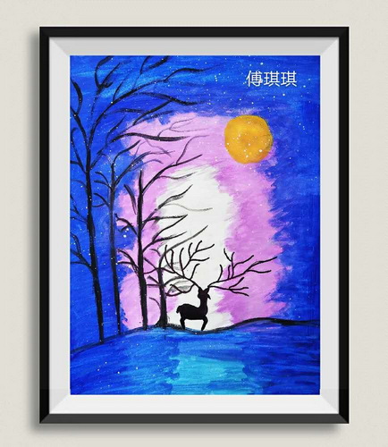 夜空下的小鹿