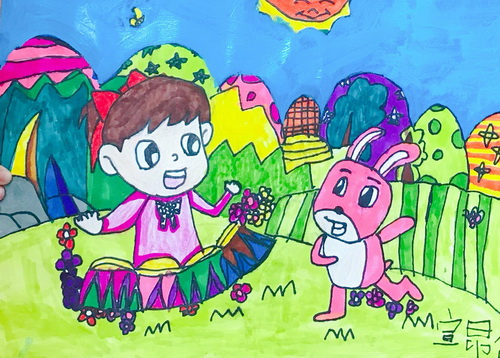 击鼓女孩和小兔