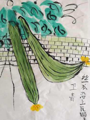 丝瓜沿上瓦墙生