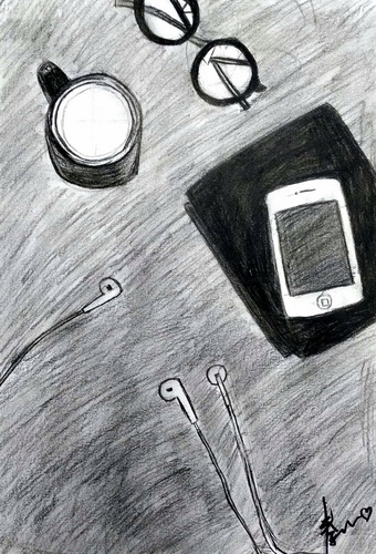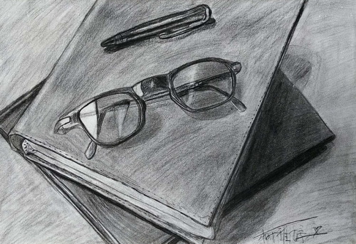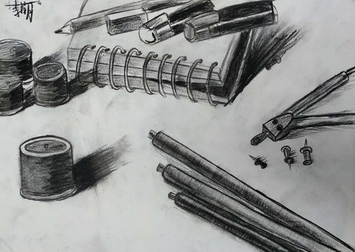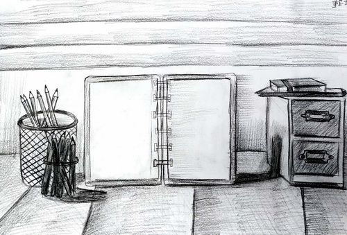 书桌一角及文具写生