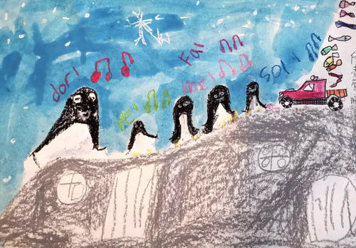 捕鱼回来的企鹅一家
