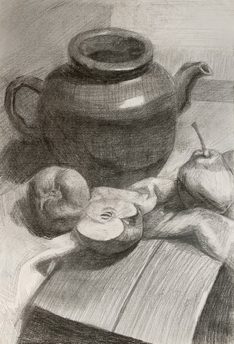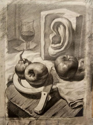 《静物素描组合石膏耳朵局部》