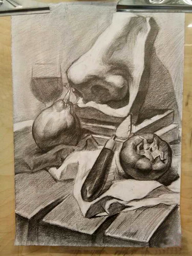 《静物素描组合-石膏鼻子局部》