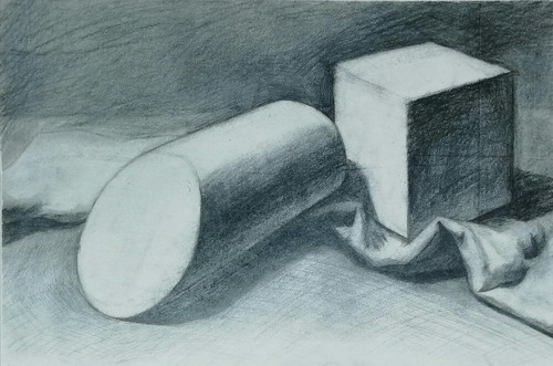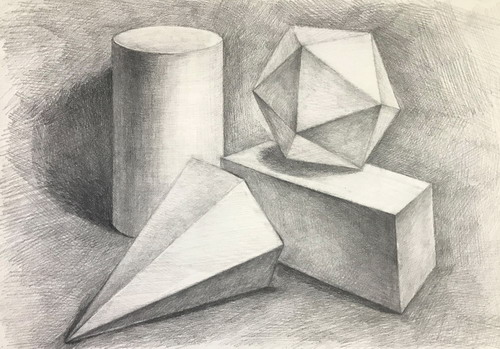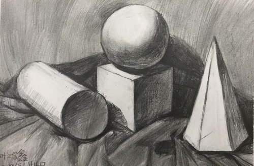 素描石膏几何体组合写生