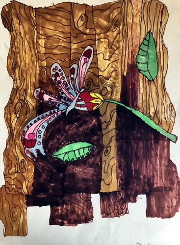 木板上花朵
