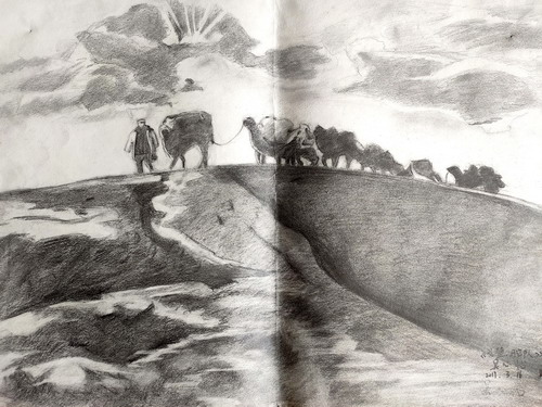 西北风情—戈壁驼队