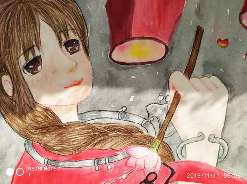 放孔明灯的少女