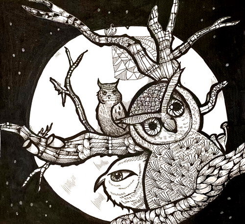 《月光里的猫头鹰》