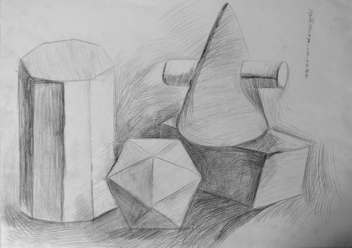 素描几何体写生