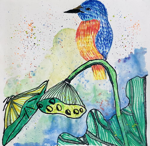 《翠鸟与荷塘》