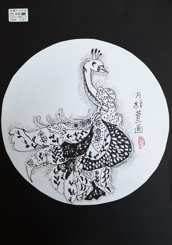 线描-孔雀