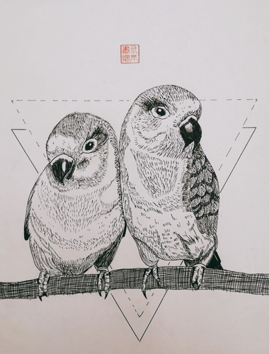 <线描大嘴鸟>